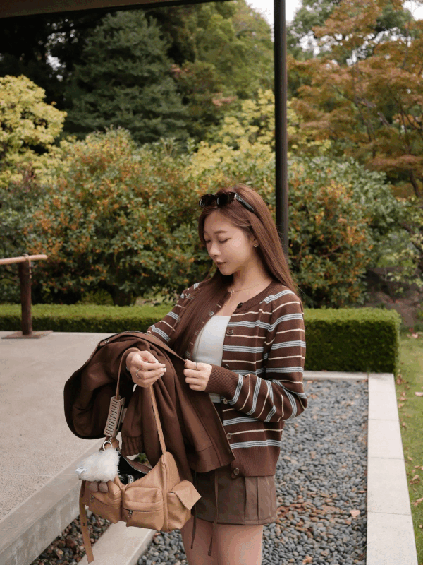 今年流行的藍啡配色,中等厚度的針織外套具保暖效果