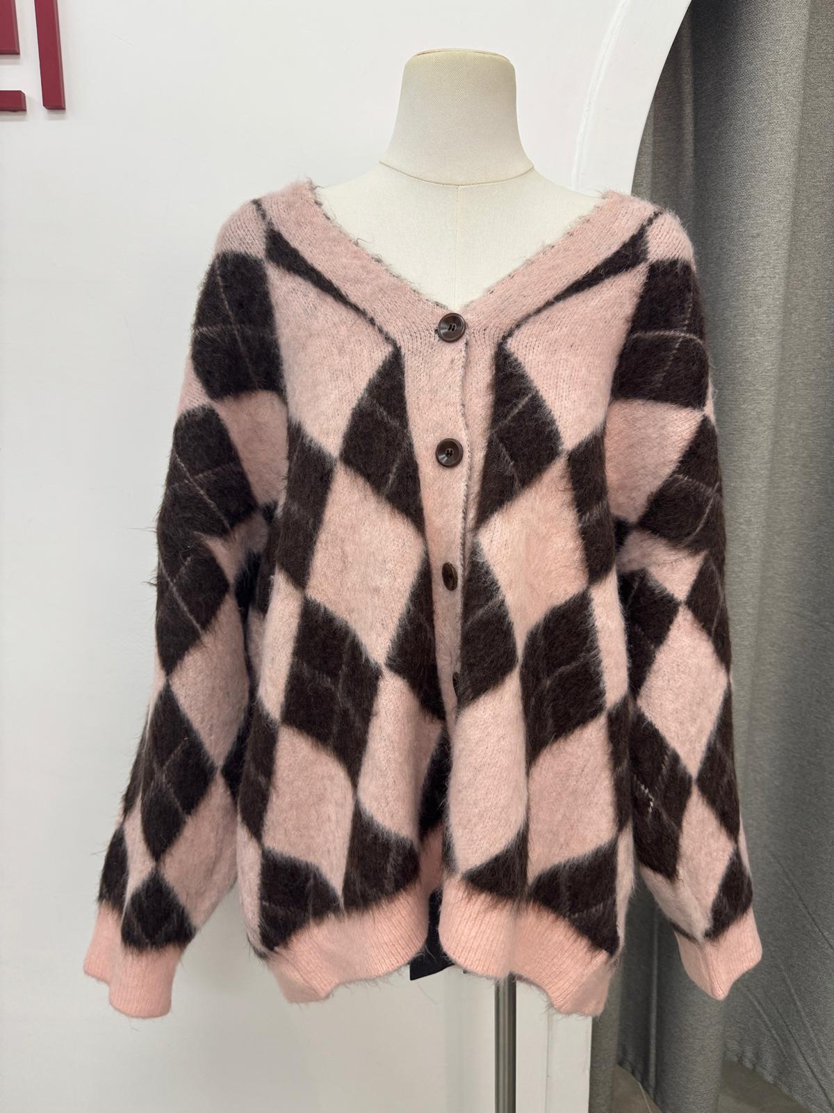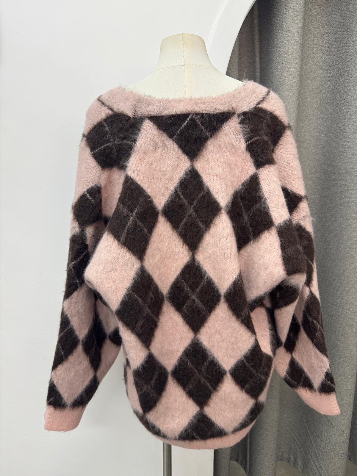 菱格毛毛開胸長版冷衫