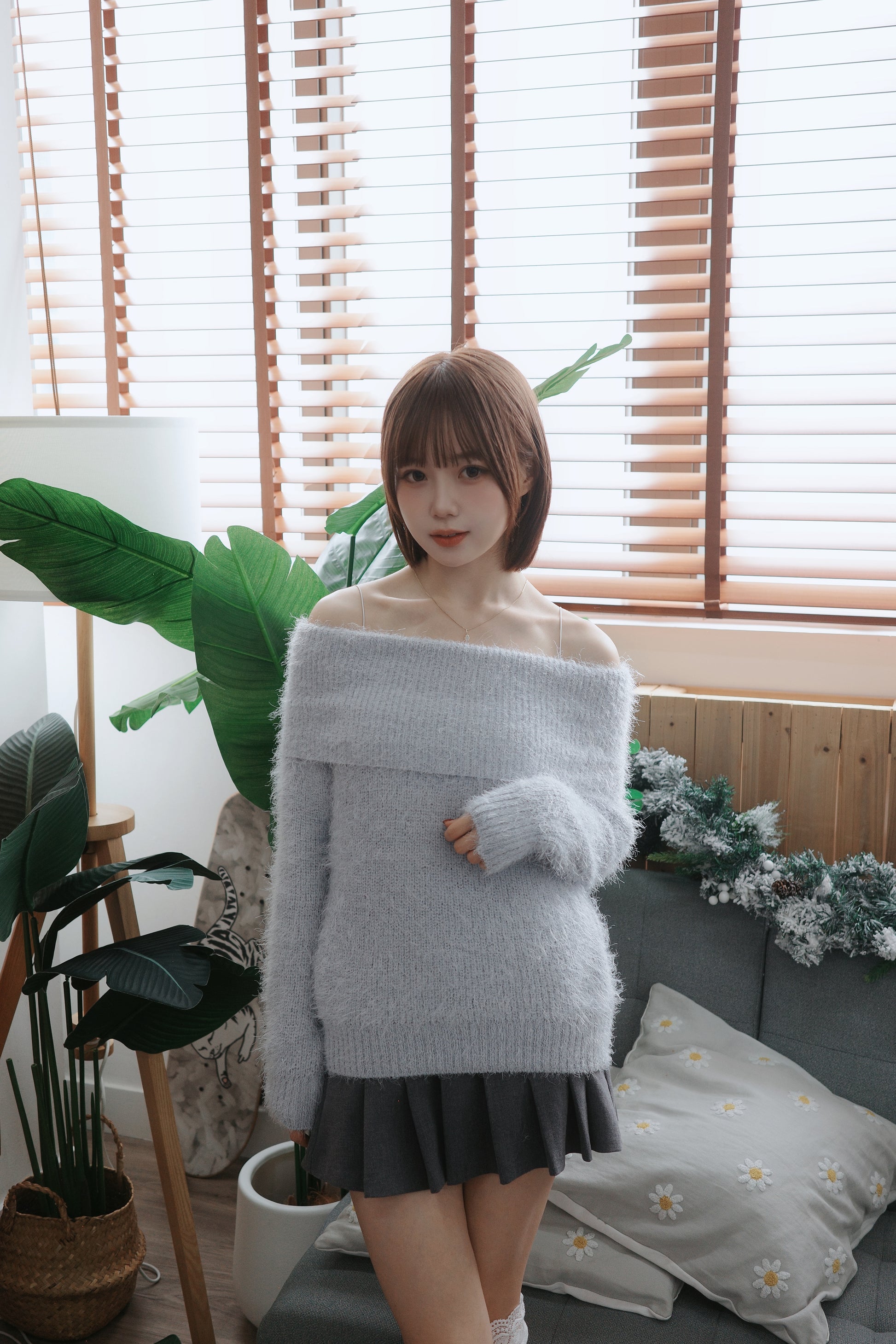 MISTY毛毛一字肩上衣